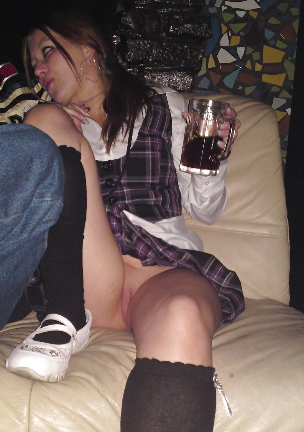 Пьяная баба пизде не хозяйка. Вот и эти девушки перебрав со спиртным случайно, а иногда и специально, показывают свои голые пилотки.