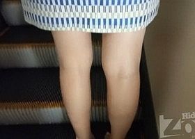 Губастая девка проехала на электричке в метро, и стала подниматься на эскалаторе. Парень за ней стал шпионить еще в вагоне поезда, а на эскалаторе при помощи скрытой камеры, подсмотрел ей под юбку.