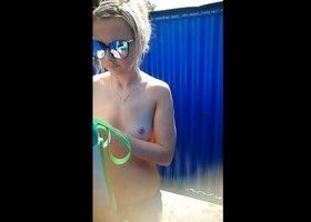 Девушка раздевается в пляжной кабинке чтобы надеть купальник, стоя прямо перед дыркой в стенке. Она не догадывается что отверстие появилось там не случайно, через него за ней подглядывают. Пока она меняла трусы и лифчик, ее интимные места снимали на скрытую камеру.