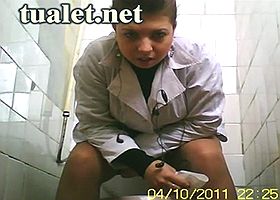 Пухленькая взрослая блондинка закрывшись в туалете приспустила трико с трусами, и оголив дряблую задницу стала писать. Сбоку от унитаза стояла скрытая камера, заснявшая голую пилотку писающей бабы.