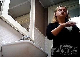 Зрелая толстушка попалась в туалете на камеру