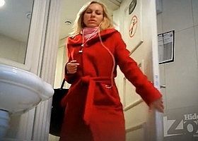 Зрелая блондинка стала раздеваться в общественном туалете, спуская колготки, а потом и трусы. Эти пикантные кадры снимала скрытая камера, на которую дамочка, засветила свою писающую щелку.