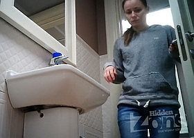 Светленькая девушка зашла в туалет поссать и засветила дырочку